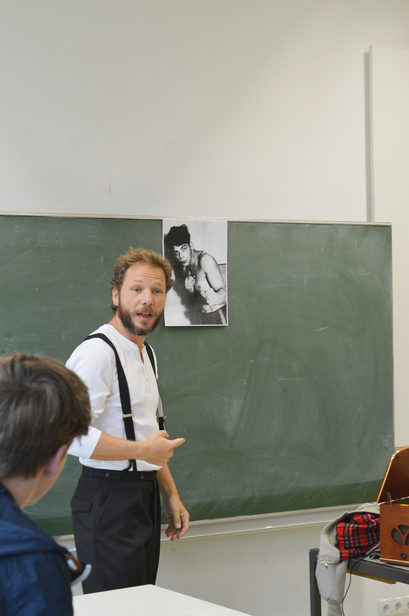 „Die Erinnerung hat mich. Sie ist in mir.“ Mehr noch, sie quält Hans. Die bedrückende Erinnerung an seinen Freund Ruki. Dabei sind doch auch schöne Momente dabei – wie sie sich kennenlernten, wie sich ihnen im Boxclub eine neue, aufregende Welt eröffnete. Wie sie für kurze Zeit glaubten, die Stadt gehöre ihnen, und Hoffnung in der Luft lag. Dass Ruki der bessere Boxer war, hat Hans nicht gestört. Gemeinsam feierten sie Rukis erste Erfolge, der „Zigeuner-Boxer“ und der blonde Hans. Zur großen Karriere kam es aber nicht, weil der Nationalsozialismus im Vormarsch war und mit den Mechanismen, die der NS-Apparat in Gang setzte, wurde auch Hans’ Freundschaft auf eine Bewährungsprobe gestellt. Die Vorlage für ihr bewegendes Klassenzimmerstück fand Reiniger in der Biografie des jungen Sinto Johann „Rukeli“ Trollmann, der 1944 im KZ ermordet wurde.